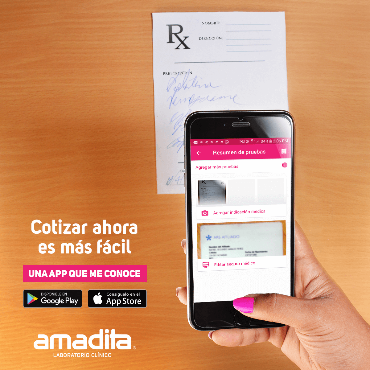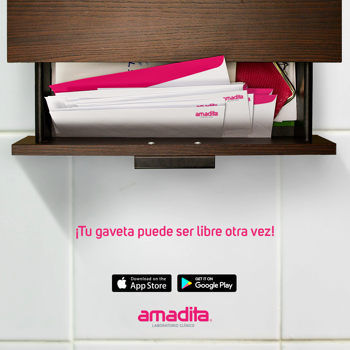 Desarrollo de la campaña para la App de Laboratorios Amadita. Recopilando insights de situaciones reales que viven los clientes frecuentes de los laboratorios al solicitar sus servcios. La nueva aplicación digital pretende resolver las dificultades más frecuentes, tales como: problems like digital results, online quotation, and nearer branch officeses.